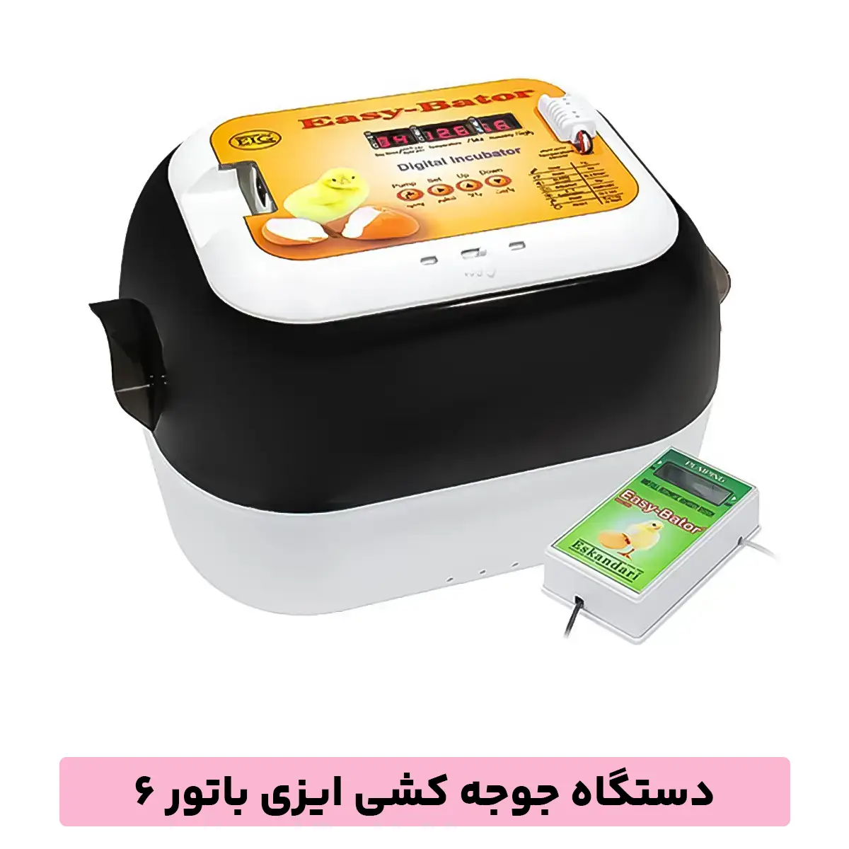 در صورتی که قصد شما از انجام فرایند جوجه کشی ، کسب بالاترین راندمان ممکن است پیشنهاد ما استفاده از دستگاه جوجه کشی ایزی باتور ۶ می باشد. طراحی ایزی باتور ۶ به گونه ای انجام شده تا مصرف کننده بدون دغدغه بتواند نسبت به انجام فرایند جوجه کشی اقدام کند. یکی از خصوصیاتی که این محصول را از سایر محصولات موجود در سایت متمایز میکند داشتن پمپ آب است.  پمپ آب سبب میشود تا شما بدون نیاز به باز کردن درب محصول بتوانید نسبت به تامین رطوبت مورد اقدام کنید. علاوه بر این این محصول قابلیت چرخش تخم های نطفه دار بصورت ۳۶۰ درجه را دارد. چرخشی که تاکنون در میان هیچ ماشین جوجه کشی ساخت ایران تعبیه نشده است.